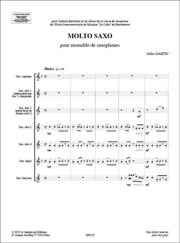 Référence : SP0554 Catégories : 2-3 Saxophones et plus, Bois, Nouveautés, Saxophone compositeur : Martin Gilles